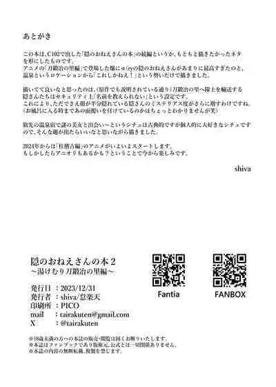 Kakushi no Onee-san no Hon 2 Pics [怠楽天 (shiva)] 隠のおねえさんの本2~湯けむり刀鍛冶の里編~ (鬼滅の刃) [中国翻訳] [DL版]